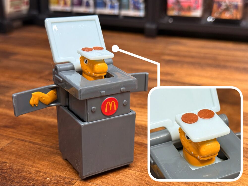 グリルの鉄板を押し上げて出てくるので頭にのったままのパティが可愛い。こちらもシールはなく、塗装やプリントで彩色されてます。