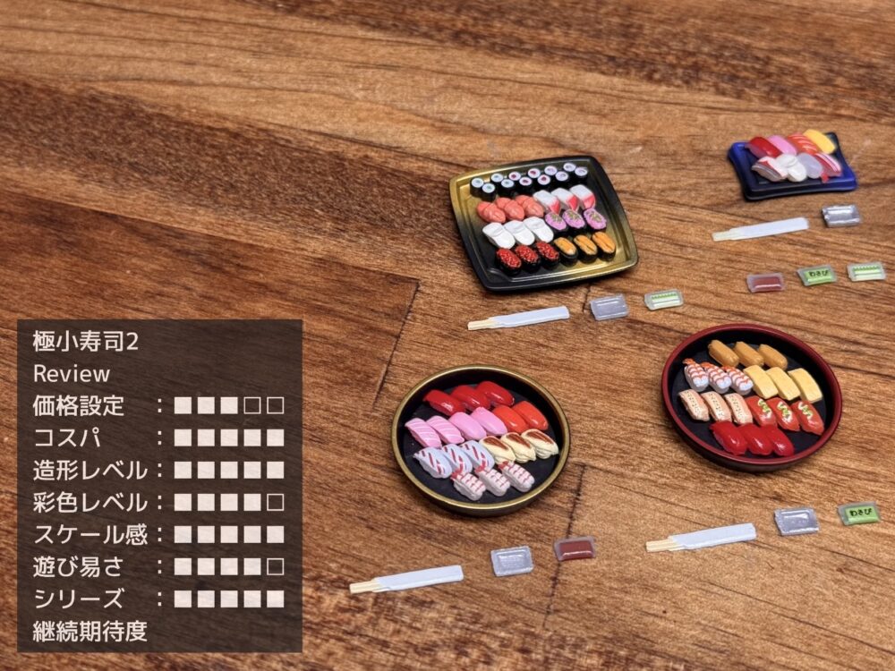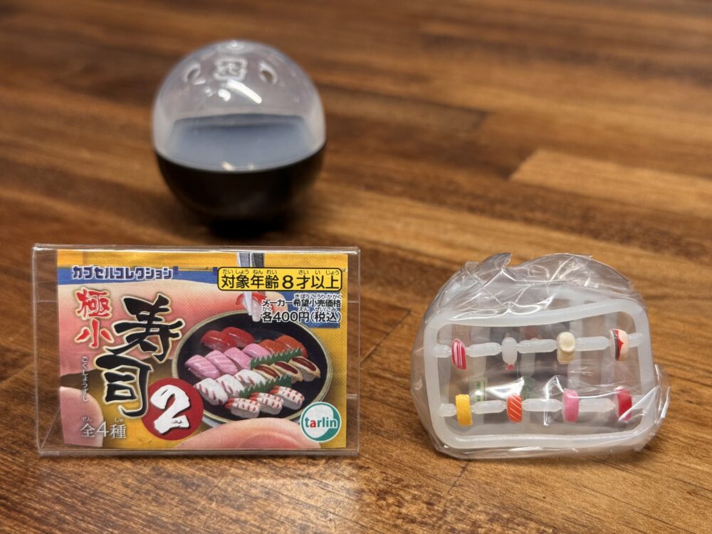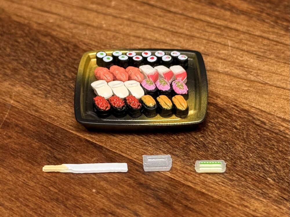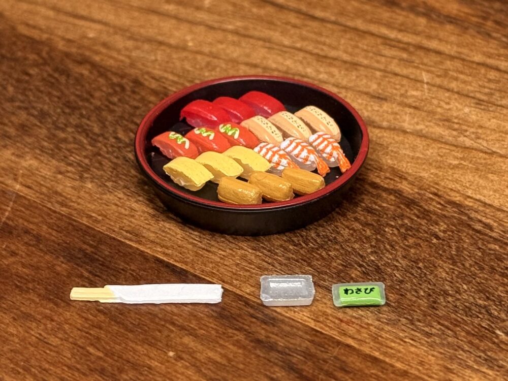 本当は中の寿司を入れ替えて自分だけの最強の寿司セットを作って遊んだりしたいんですが、レビュー予定のおもちゃが渋滞してるので「極小寿司2」のレビューはここまでにしておきます。