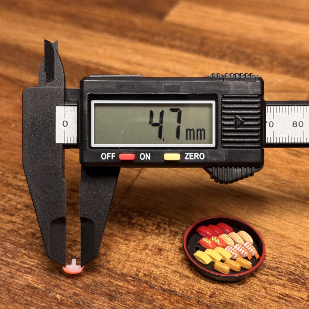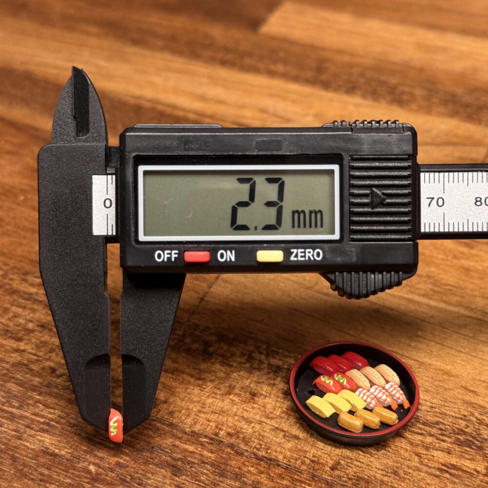 寿司(シャリ)のサイズはこんな感じ。幅が約2.3mmで長さが約4.7mmしかありません。